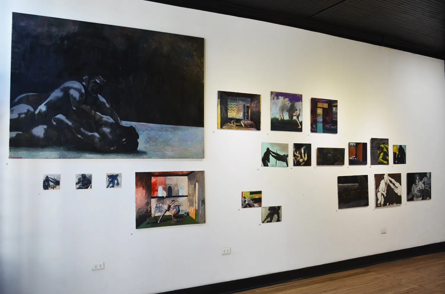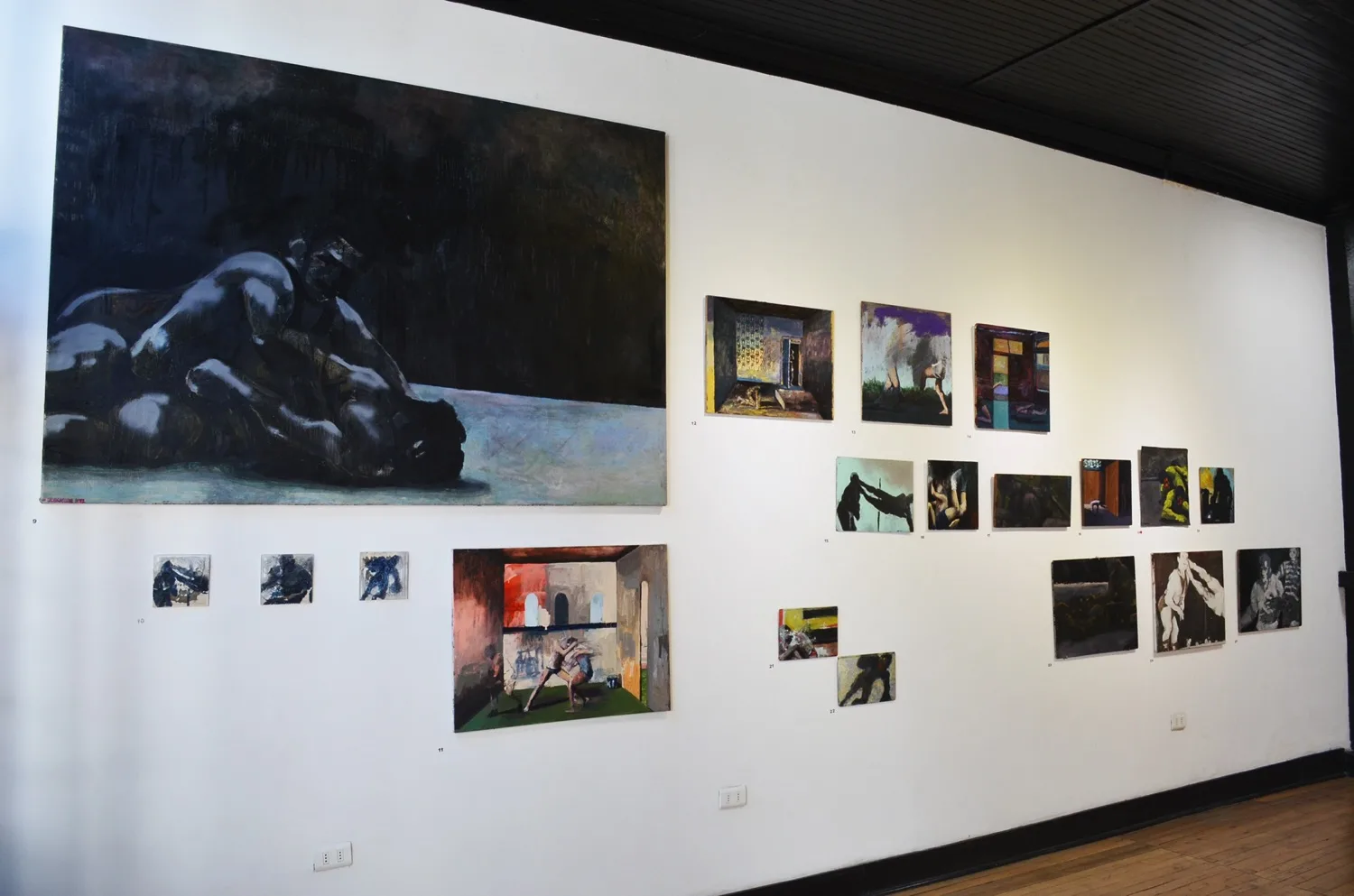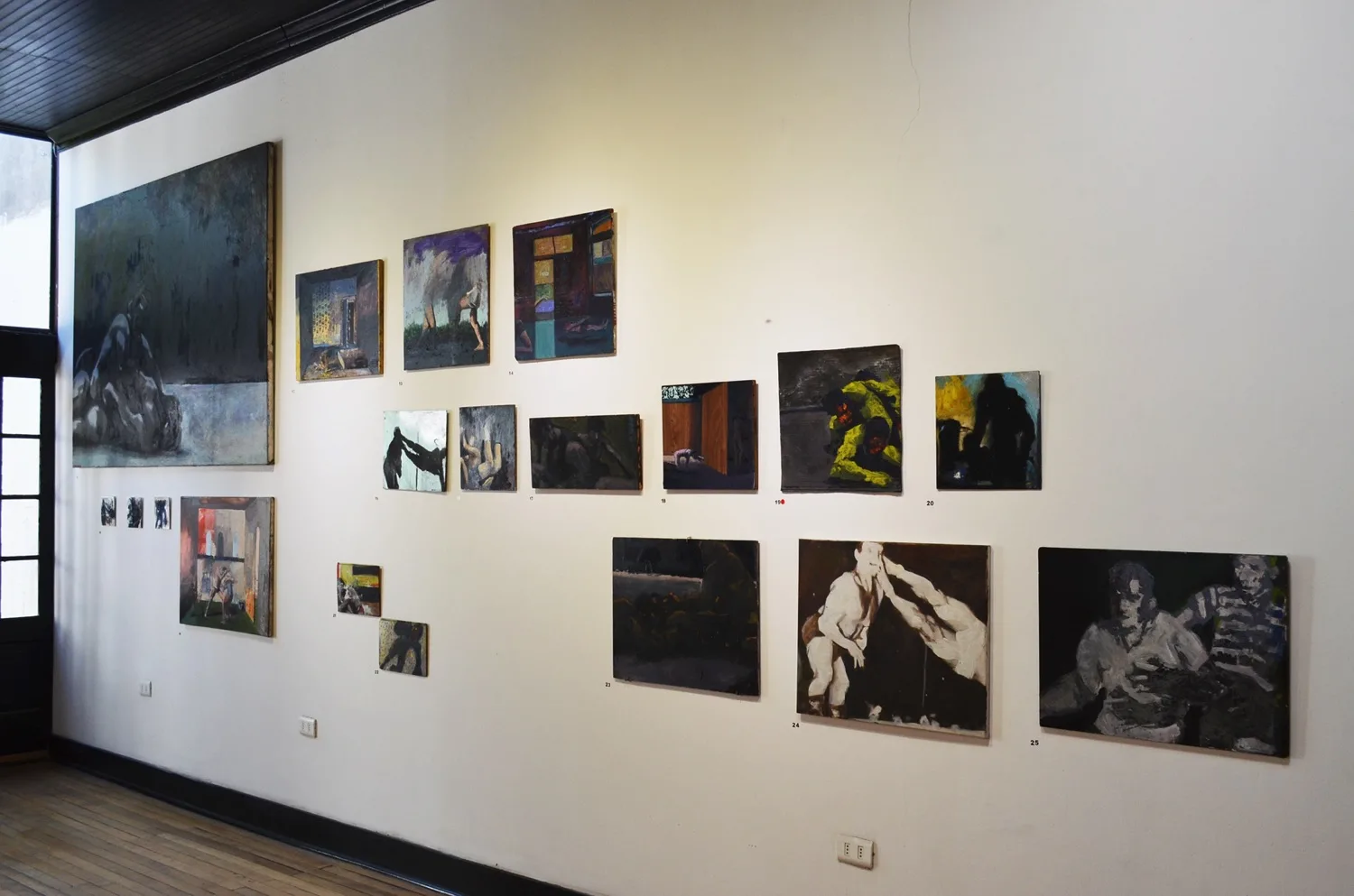 Spray, negro de humo, esmalte al agua, esmalte sintético y óleo sobre tela